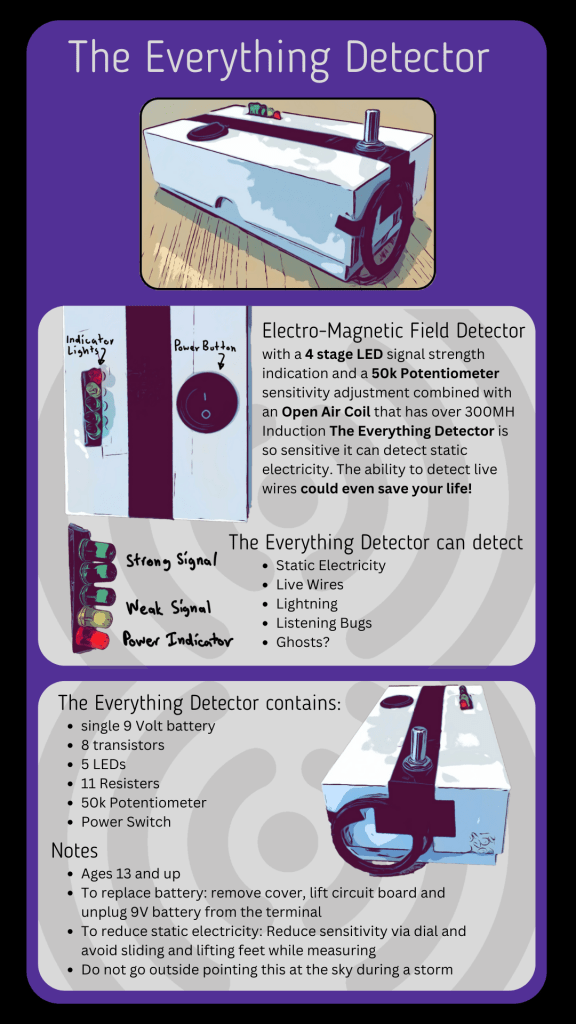 This was a collaborative project for a technical description of the “Everything Detector,” a DIY EM Detector made by my project partner. We chose the canvas size to fit best with the product’s packaging. For context, we wanted this product description presented as a product insert when the consumer first opens the packaging to receive basic instructions.